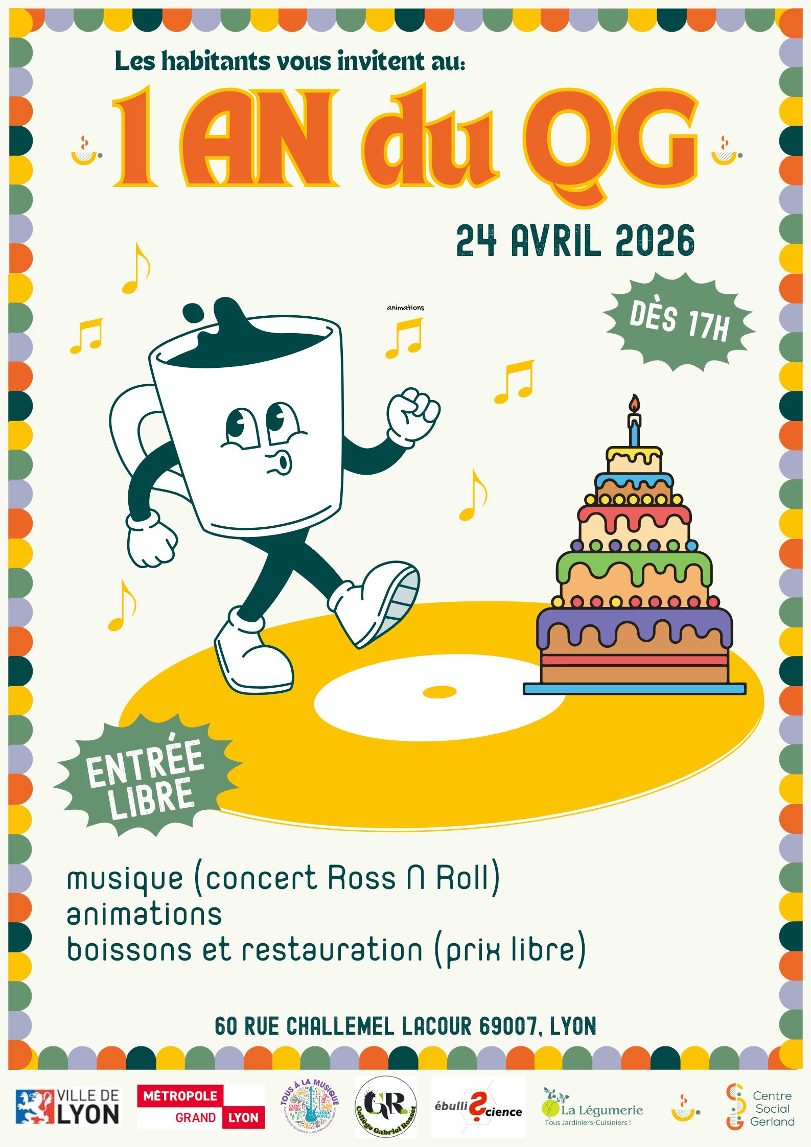 Le café QG, du Centre Social, a le plaisir de vous inviter à célébrer son premier anniversaire .
