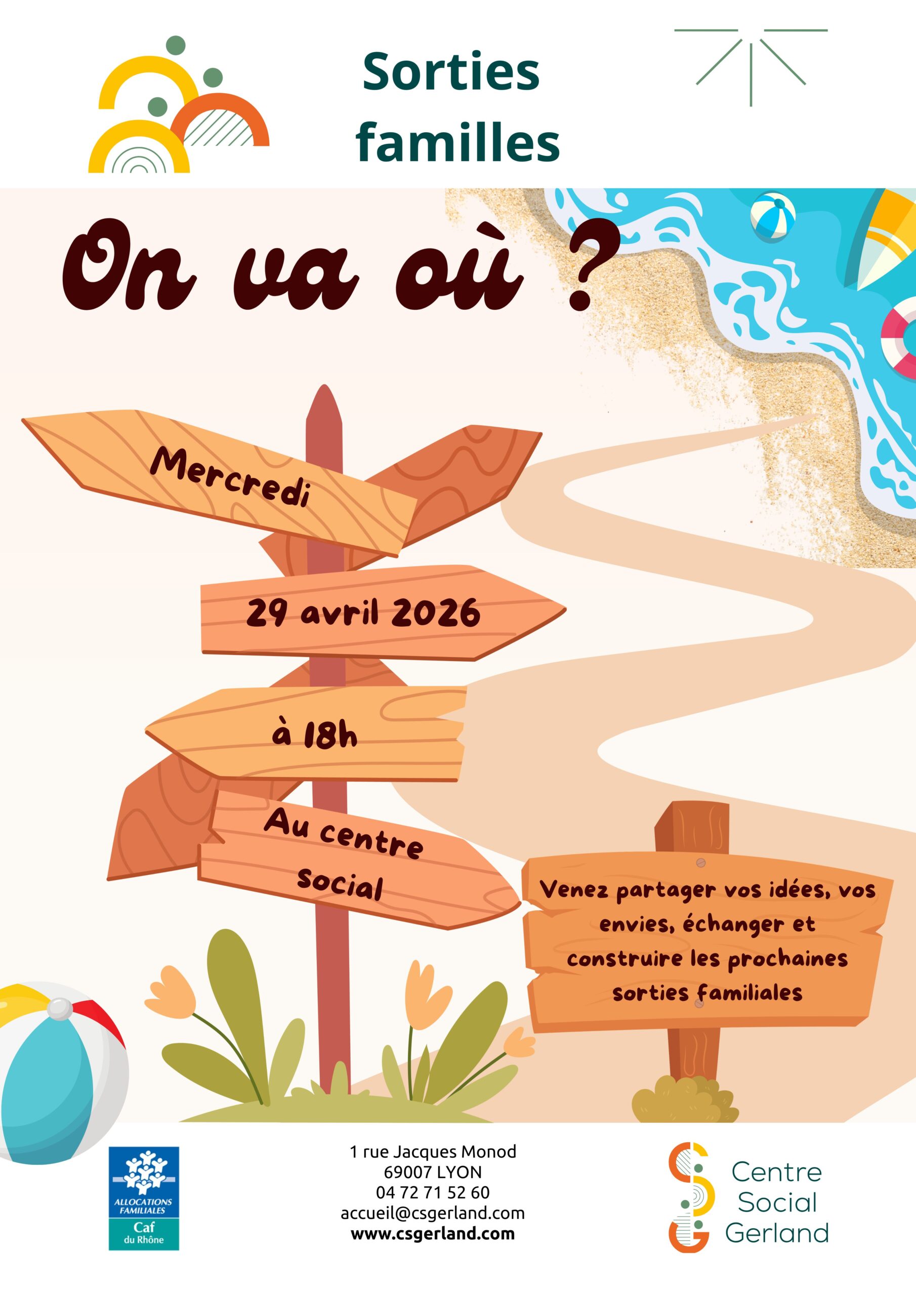 Le centre social vous propose de venir aider à construire les prochaines sorties familiales en partageant vos envies et vos idées. Vous êtes les bienvenues le mercredi 29 avril 2026 à 18h au centre social pour organiser les futures sorties de l’été.
