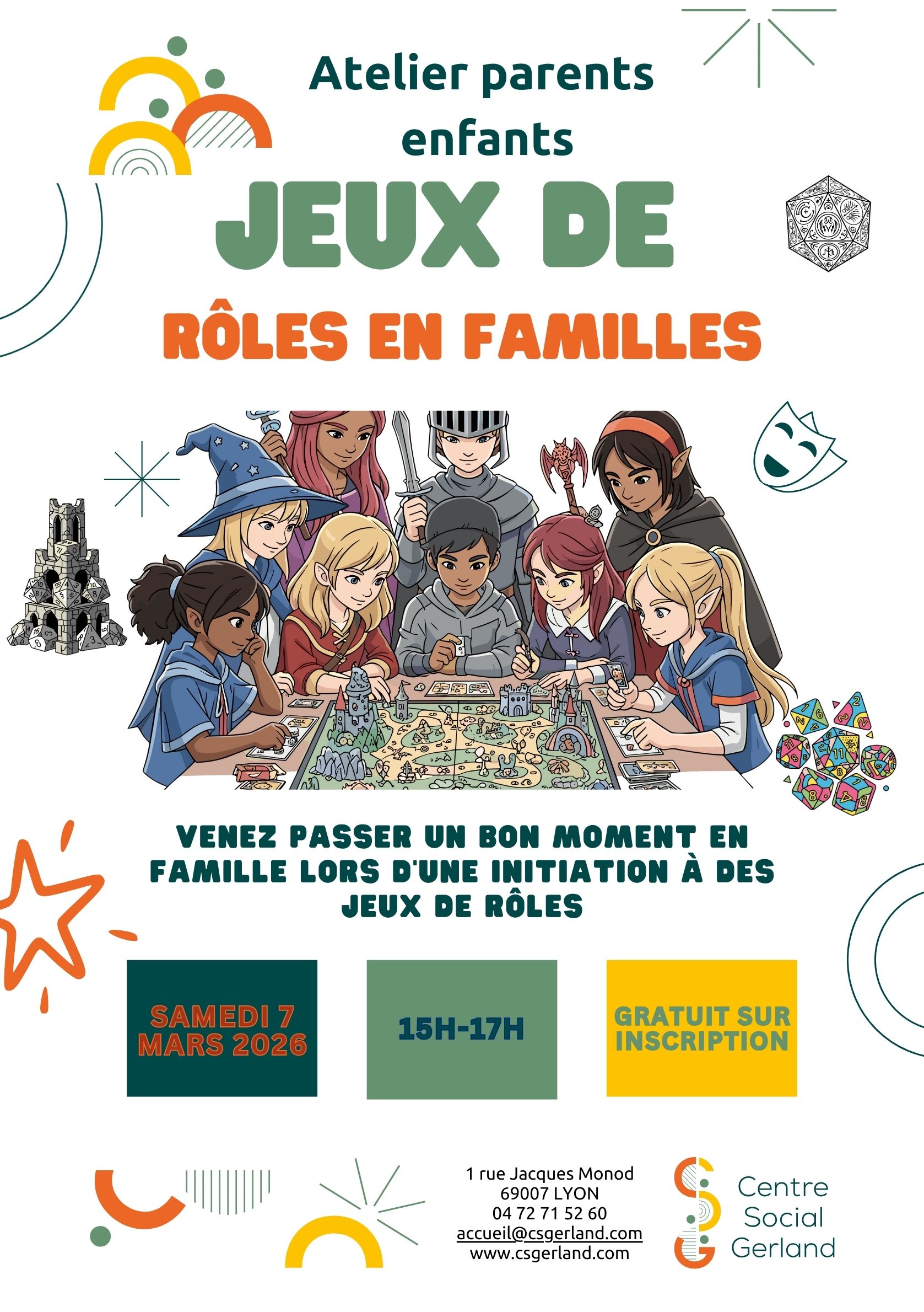 L’équipe du centre social vous propose un après-midi découverte des jeux de rôles en famille le samedi 7 mars 2026 de 15h à 17h.