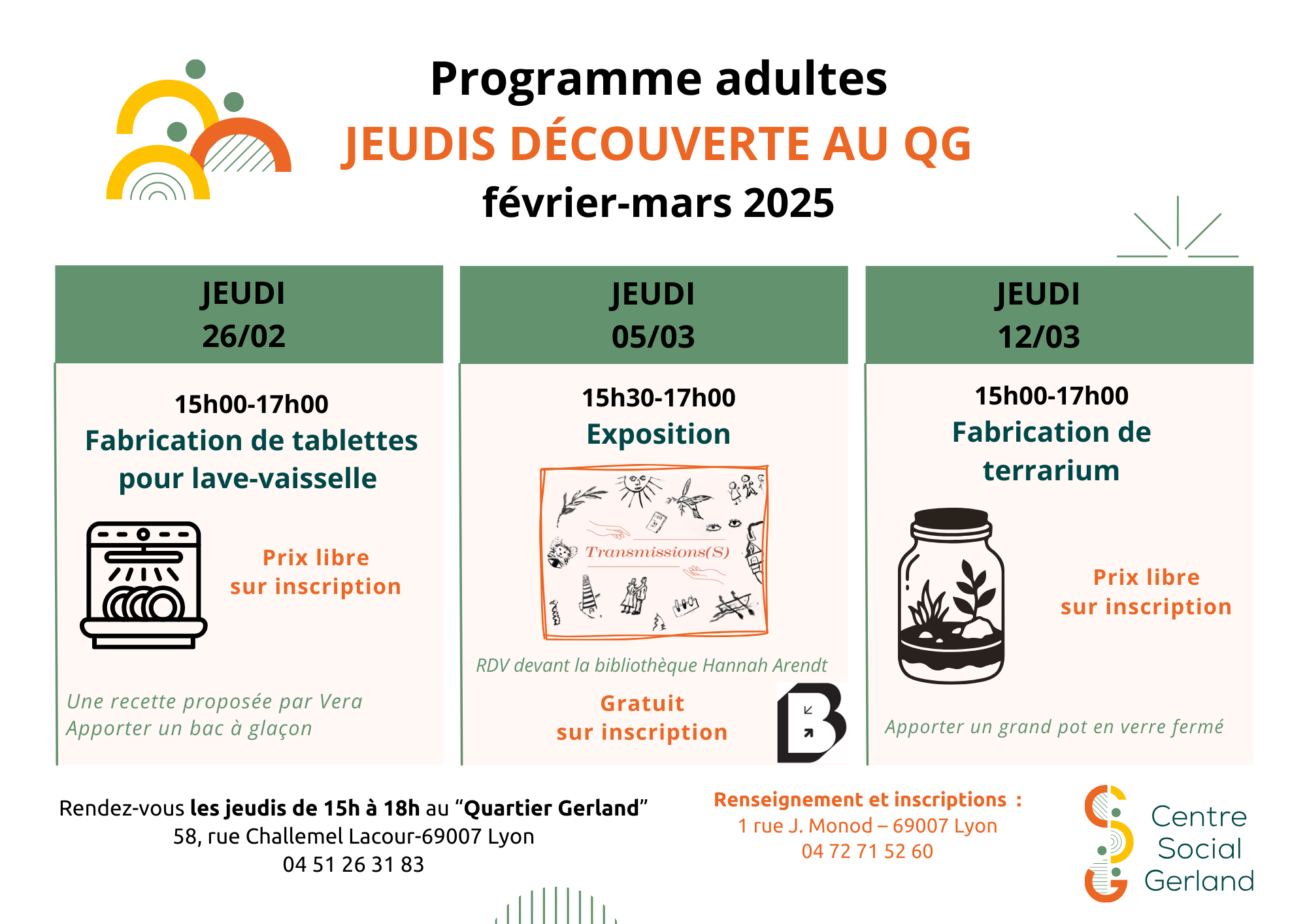 Rendez-vous les jeudis après-midis à partir de 15h au café des habitants « le QG » (60 rue Challemel Lacourt à Lyon 7).
